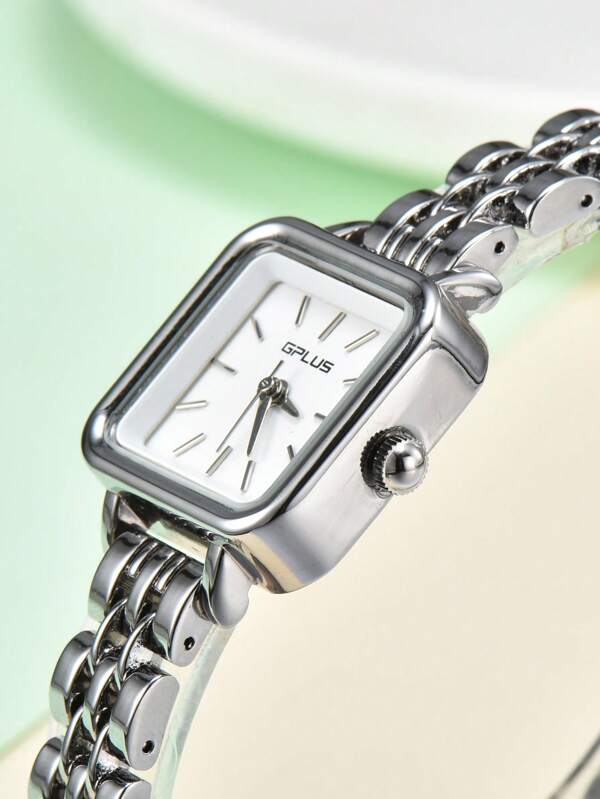 Relógio Prata De Quartzo Com Ponteiro Quadrado